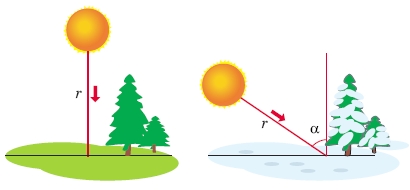 I - gaismas stiprums, r – attālums no gaismas avota līdz punktam, kuru apgaismo, α – gaismas krišanas leņķis.