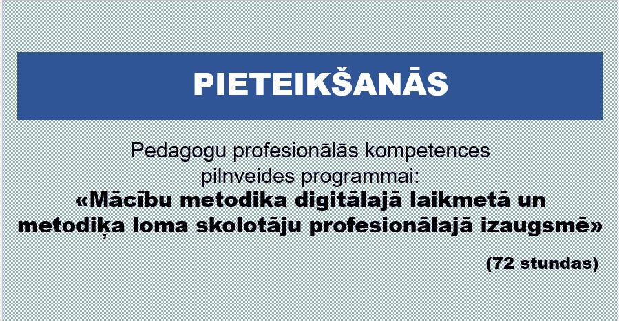 “Mācību metodika digitālajā laikmetā un metodiķa loma skolotāju profesionālajā izaugsmē” (72 stundas)