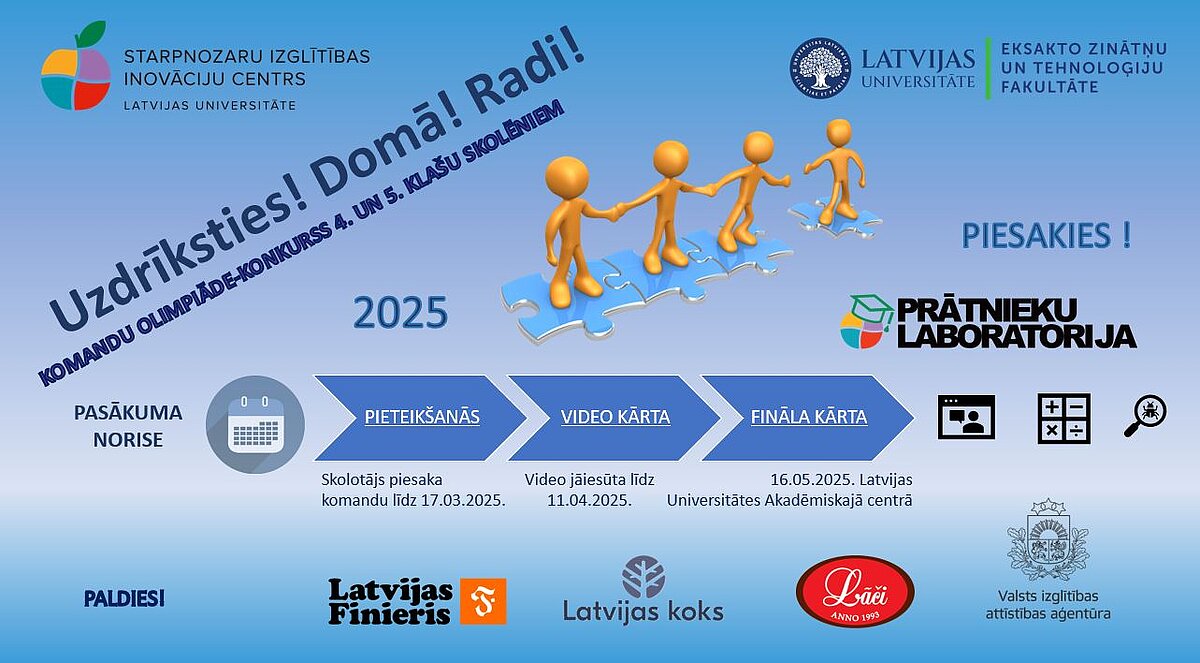Izvirzītās komandas piedalās noslēguma kārtā 16. maijā Latvijas Universitātes Akadēmiskajā centrā, LU Zinātņu mājā (Jelgavas ielā 3, Rīgā) un LU Dabas mājā (Jelgavas ielā 1).